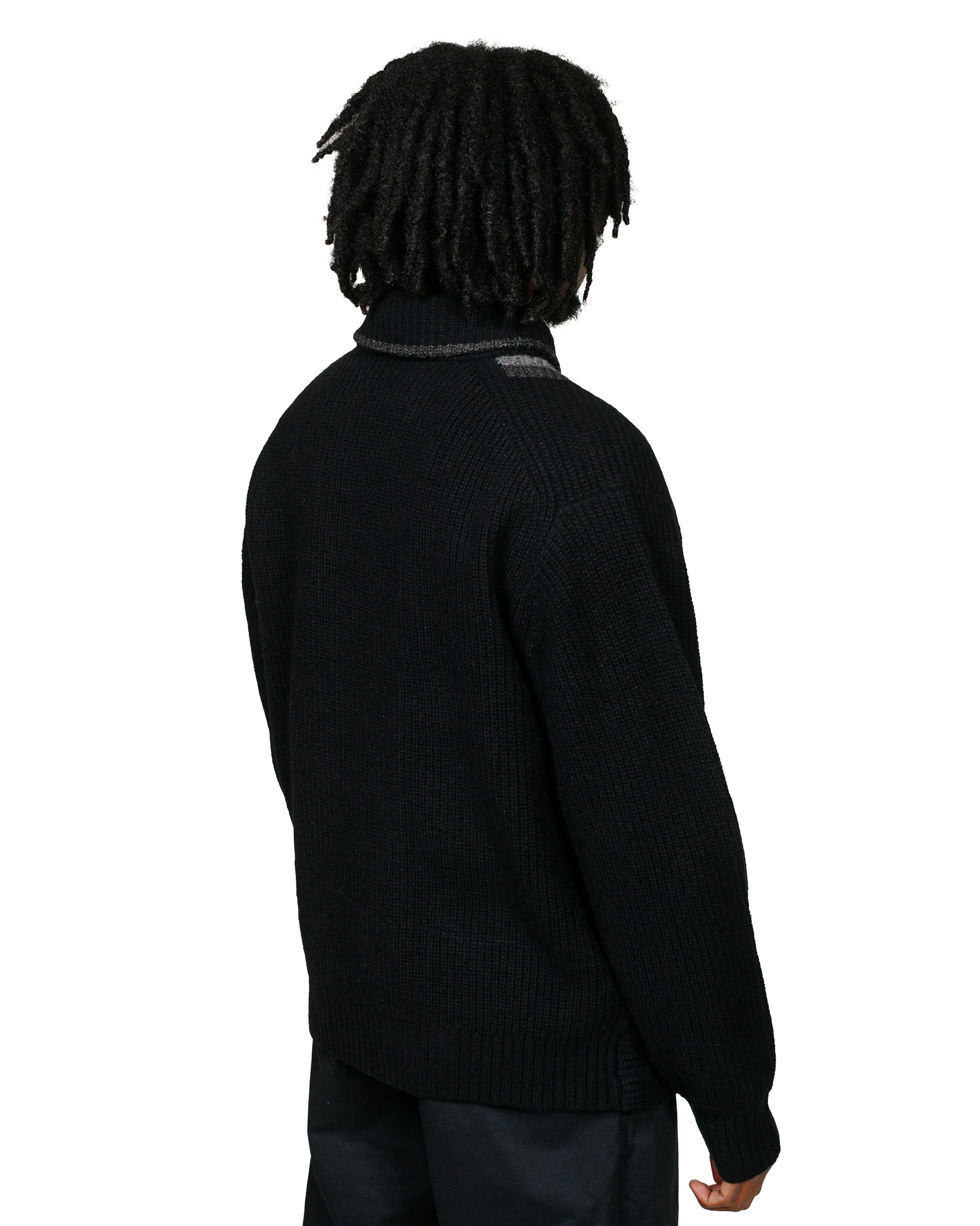 Beams Plus Full Zip Shawl Collar Knit Black